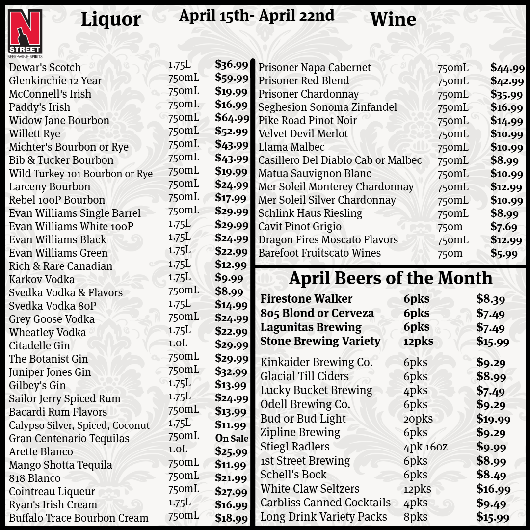 N Street Drive In has been Lincoln, Nebraska's premier liquor, wine and beer store since 1963. Located in the heart of downtown N Street has the best selection of craft beer in the city. Come see us before your party, on game day, or anytime you want to try something new or pickup an old favorite.
